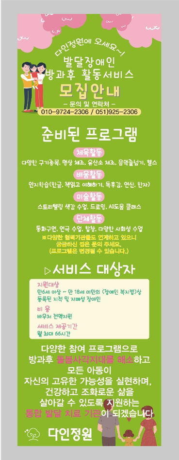 다인정원 발달장애인 방괴후 학교 지정업체 안내